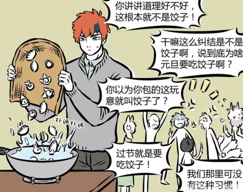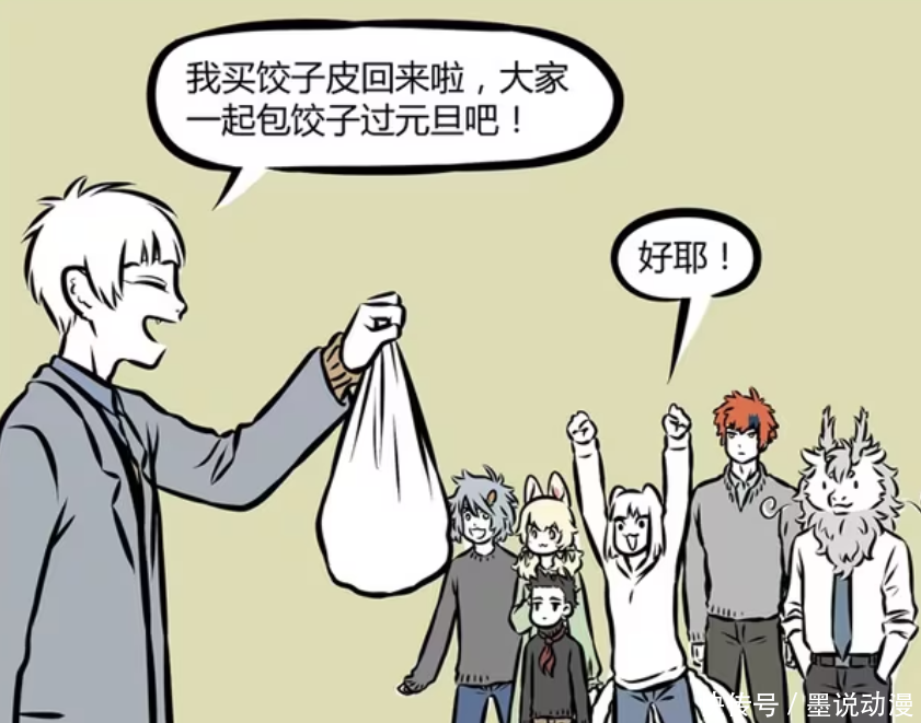 《非东谈主哉》漫画版中,主角们扫数理睬新年,这时分十一月提倡包饺子来跨年。在这里见到了好多地点包饺子的手法。不外也因此,九月、小玉、哮天、十一月、哪吒吵了起来。跨年之时欧洲杯体育,哮天最振作,九月被他从睡梦中喊醒。但是昴日星君蹂躏了哮天,还告诉他,狗年还莫得到来。