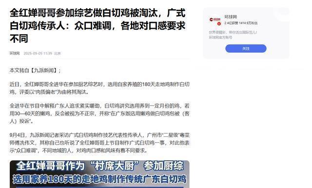全红婵或许也都念念不到,我方的哥哥有一天竟会因为一都菜卷入“公论战”。 全进华在一档好意思食综艺惨遭评委淘汰,认为他烹调的白斩鸡太老,难以进口。 而濒临这个服从,全进华并莫得心折口服,宣称白斩鸡的本钱即是需要“老鸡”而不是“饲料鸡”, 肉质紧实才更有滋味。