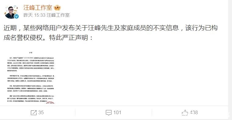 35. 就在章子怡发布配音互助音书的归并天,汪峰责任室对外发布一则严肃追责声明。
