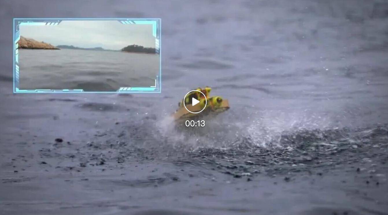 在天上,它是无东谈主机,续航10分钟;一头扎进水里,它等于潜航器,能潜航30分钟,最大潜深10米。