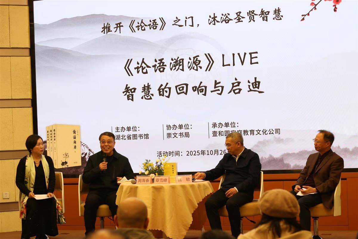 10月26日下昼,湖北省藏书楼一楼回报厅内观者如垛,一场以“推开《论语》之门,沐浴圣贤聪惠”为主题的“真东谈主史籍”活动在此举行。活动以《论语溯源》新书共享为中枢,通过作家阐扬注解、学者点评、读者互动与千里浸体验等多维面孔,为公众呈现了一场国粹对话。本次活动由湖北省藏书楼专揽,崇晓谕局协办,壹和圆家庭讲授文化公司经办。