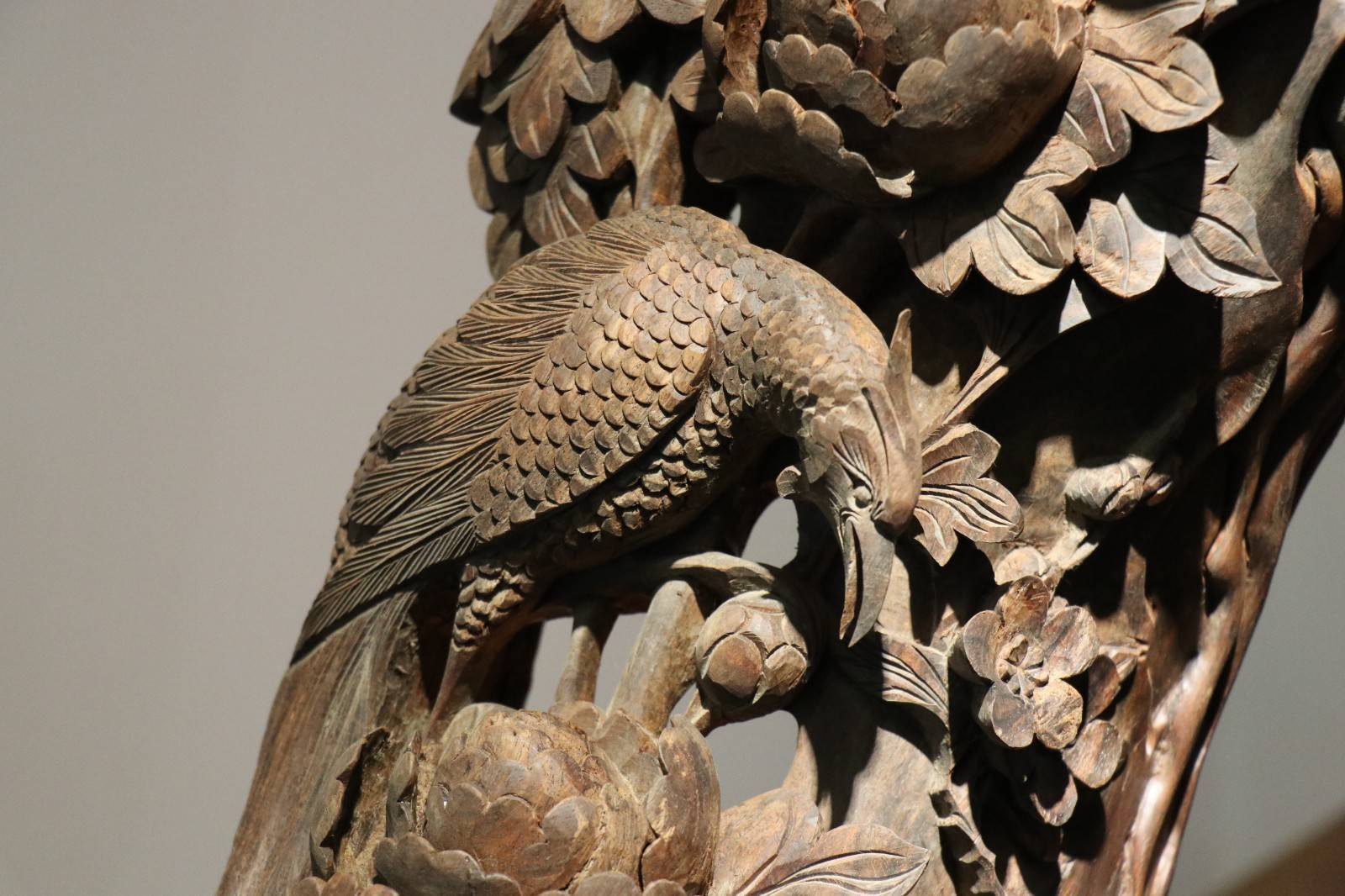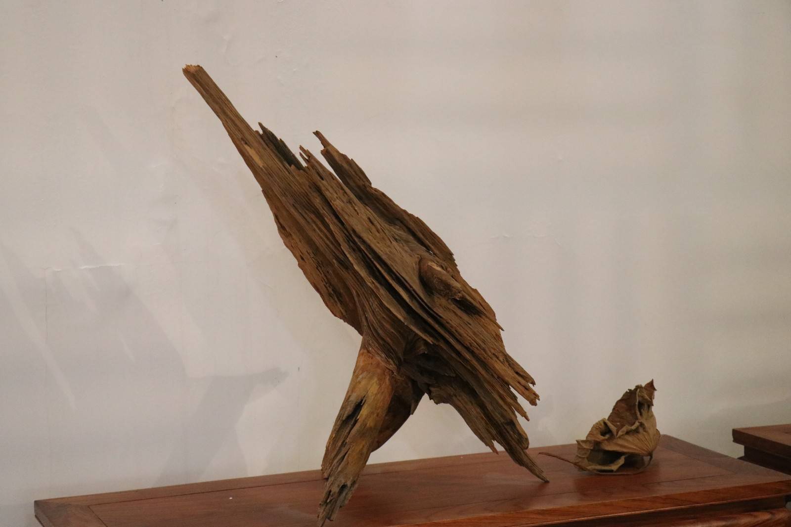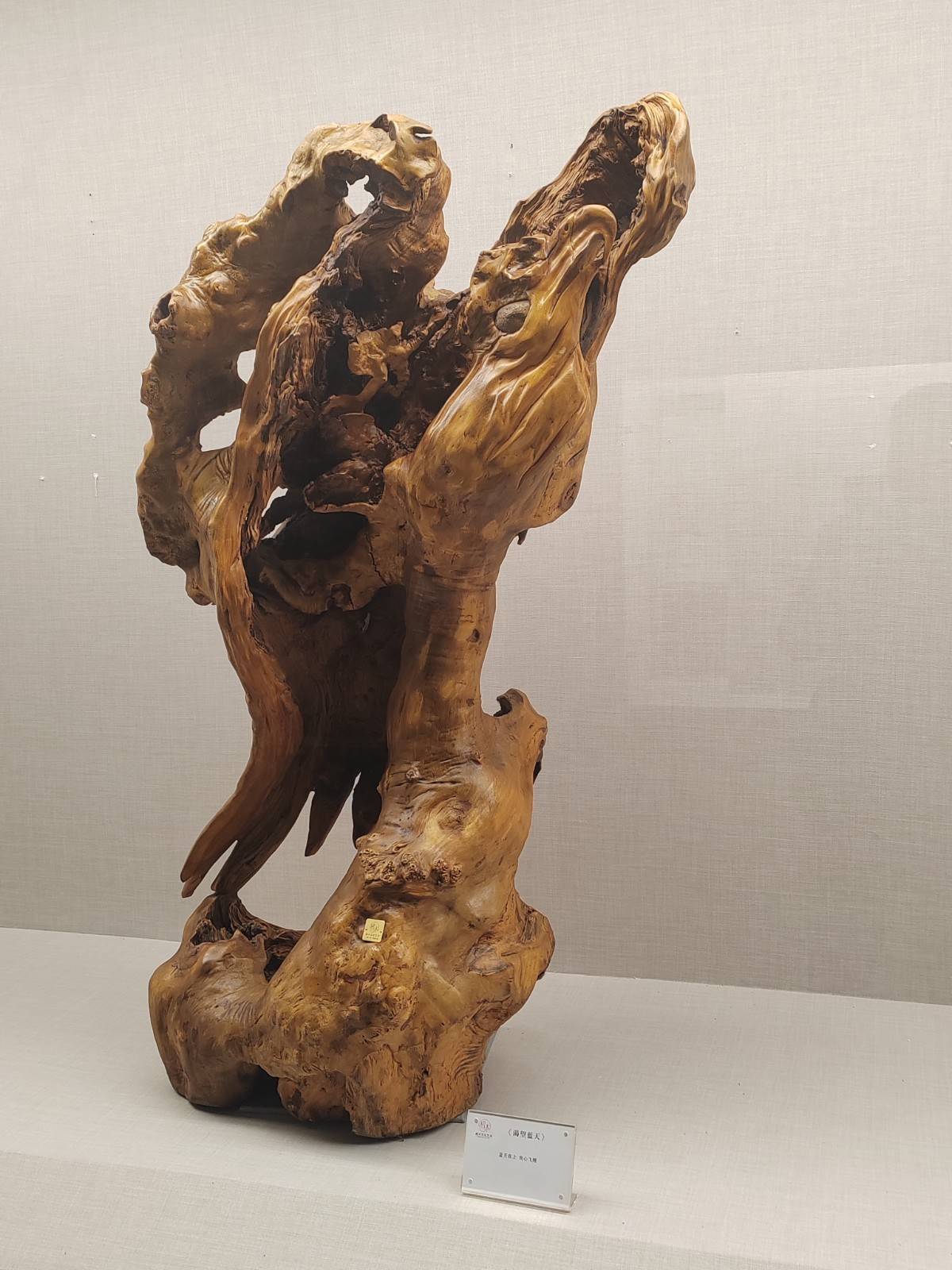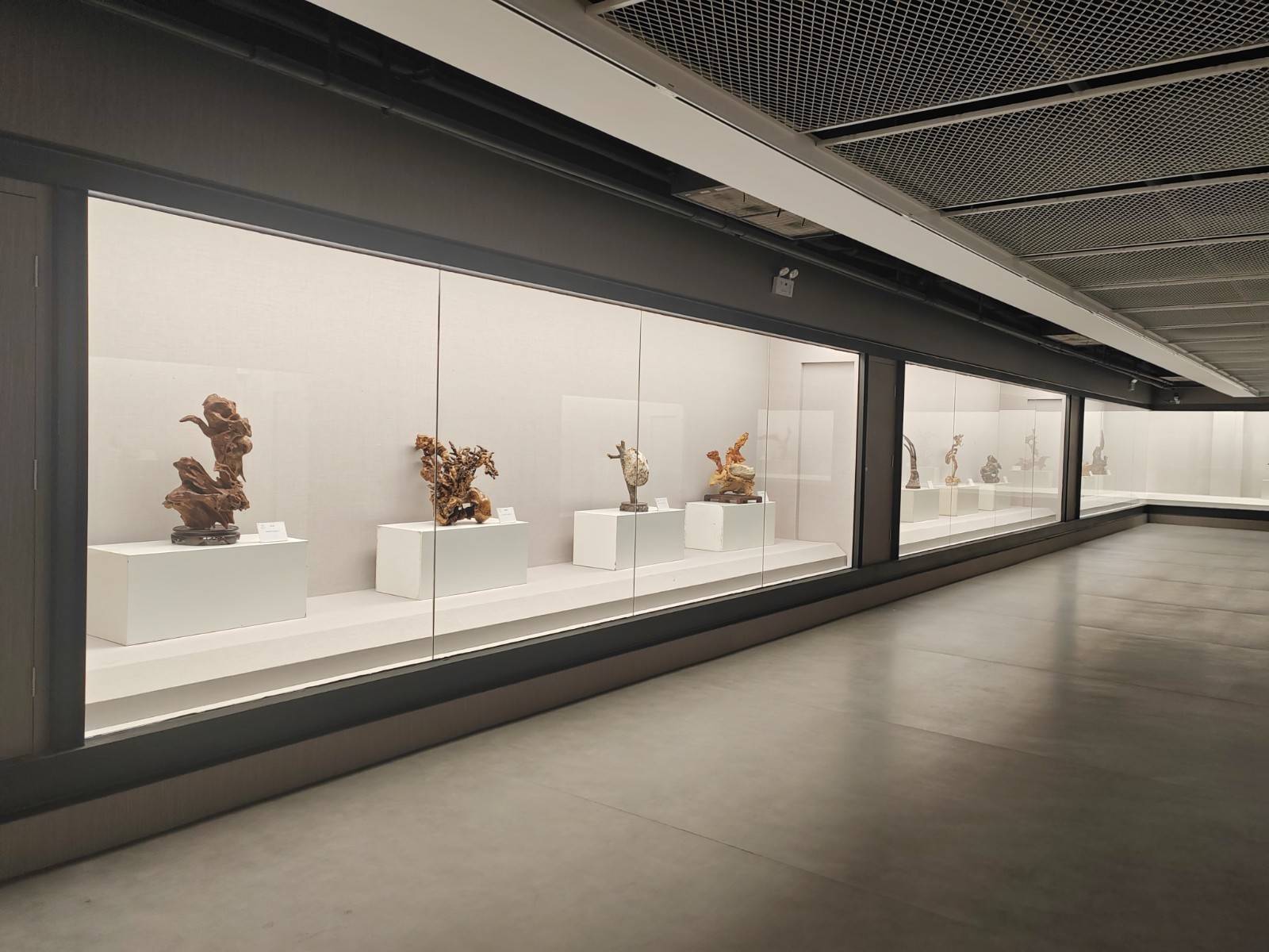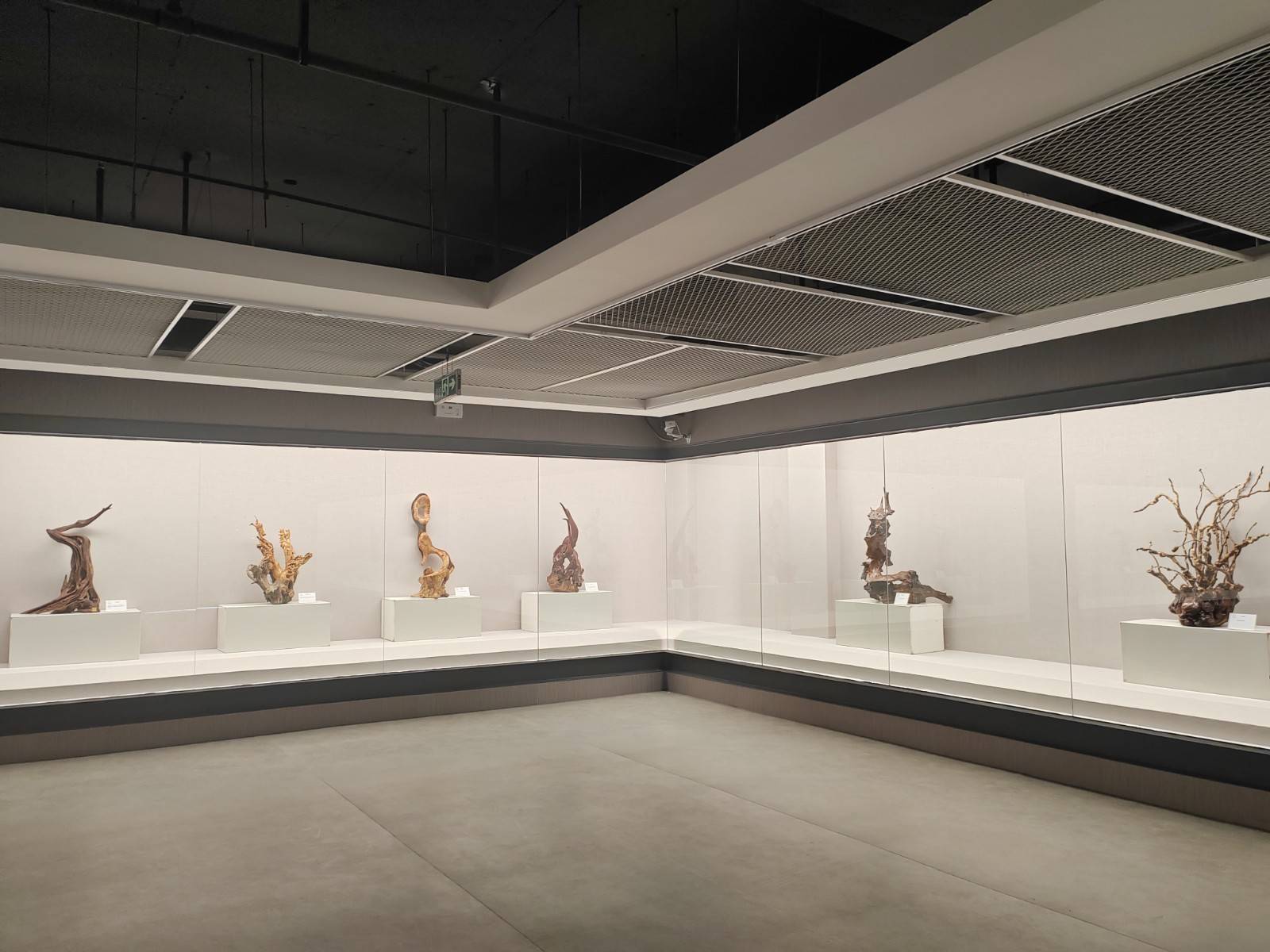 展览现场,四十余件作品从当然树根到阴千里木,从具象造型到概述抒发,每一件皆带着“藏魂在自然”的灵气,更藏着沈永明与根木半生的故事。